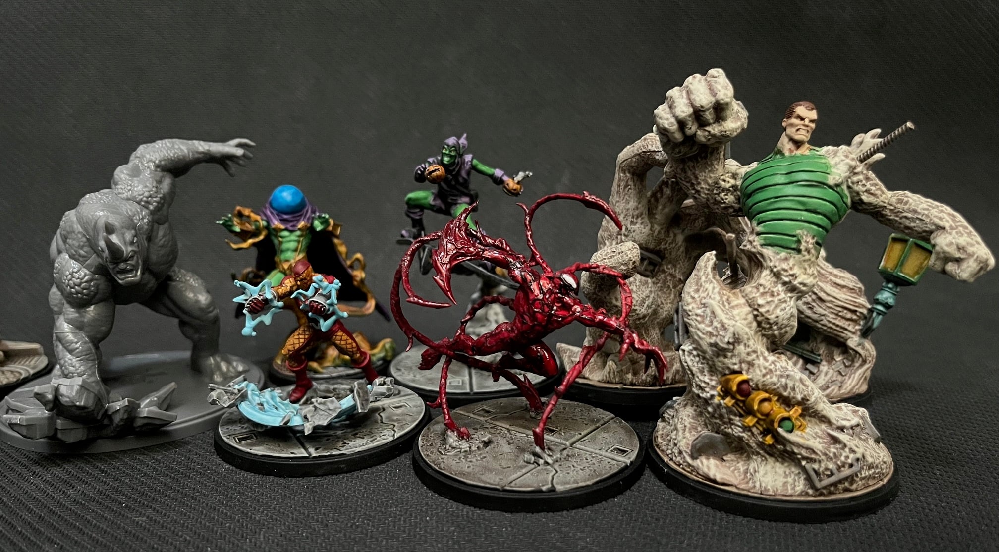 But with Rhino, I’ve got all the Spider-Foes from this set ready for the tabletop. I’ve actually unboxed and covered both of the character packs before. If you want to check them out while they are still grey you can see those pics HERE. Anyhow, here’s a few group shots of them: