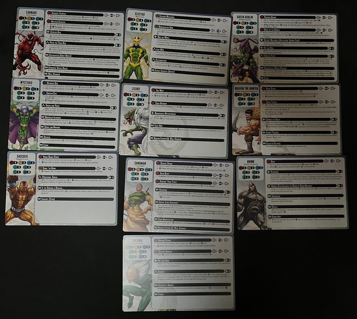 A full roster of some of Spider-Man’s most iconic villains are set to send a jolt to the Spidey-Senses as they take to the streets of New York with one goal in mind: swat down the spider! This Starter Set contains all the miniatures, Character Stat Cards, and Team Tactic Cards for the following characters: Green Goblin, Kraven the Hunter, the Lizard, Mysterio, Shocker, Sandman, Carnage, Rhino, Vulture, and Electro.
