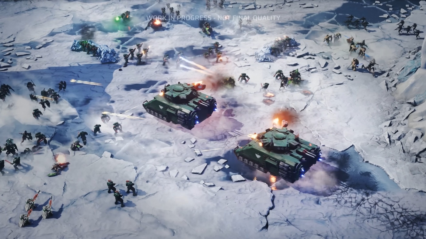 The Primaris Marines are in full force in Dawn of War IV. From the looks of things we’re getting a mix of Primaris units. We’ve the Invictors blasting away above along with Deathwing Terminators and Intercessors.