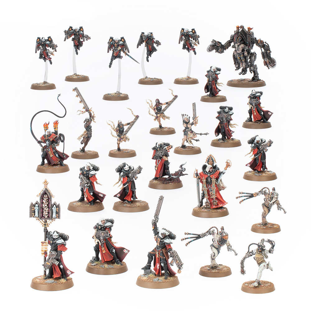 “You can start a brand new Adepta Sororitas army or add to an existing collection with the return of the Sisters of Battle Army Set via Made to Order. This cadre of devout Battle Sisters contains a Canoness, a Penitent Engine, a Repentia Superior and four Sisters Repentia, three Arco-flagellants, a five-strong Seraphim squad, and a Battle Sisters squad comprising 10 miniatures…