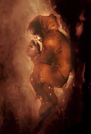 He would often appear to followers and potential acolytes as a short human with icy blue skin, or else a perfect circle of ice near a frozen shore. On the whole, her preferred solitude—so much so that he encased himself in ice and descended into a slumber-like state from which he has not stirred (at least not beyond the occasional projection or manifestation) for untold centuries.