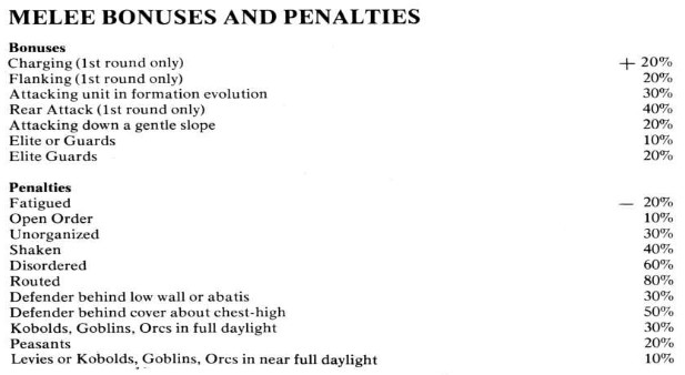 Super easy, right?! And, yeah, it is. But, what 70s wargame would be complete without a long table of modifiers?! Don’t forget your 20% bonus for attacking down a gentle slope…