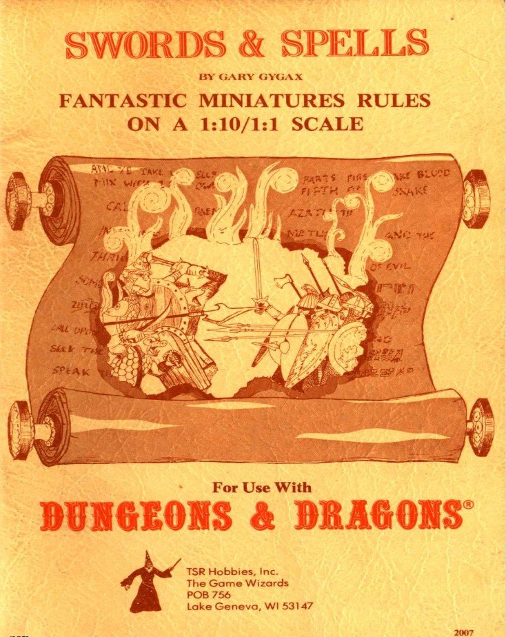 Technically, Swords and Spells is an RPG supplement for 1st edition D&D. However, it is fully playable as a standalone wargame. It just happens to use the theme as D&D, including all the monsters and spells players had come to know so well.