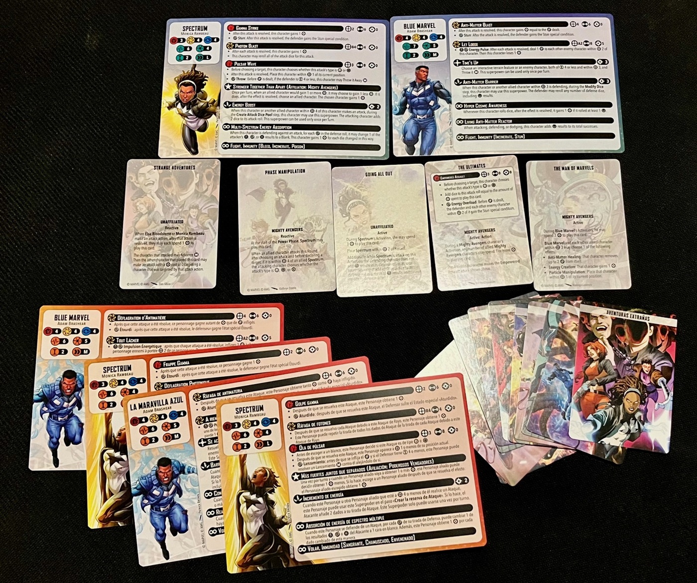 As for the cards, this set comes in three supported languages this time around. You’ll get a full play set of cards in each language here. If you want a closer look at the rules themselves, I covered those already in more detail with much better pics from AMG. And again, as I mentioned in the note above Spectrum’s Pulsar Wave is going to get an errata to correct the printed cost.