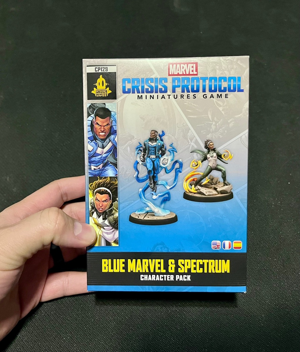 This pack brings two new characters to Marvel: Crisis Protocol, the powerhouse Blue Marvel and the leader of the Mighty Avengers Spectrum to the game. Spectrum adds a new Affiliation, the Mighty Avengers to the game with a new leadership that allows members of her squad to be able to transfer some of the Power they gain to their allies.