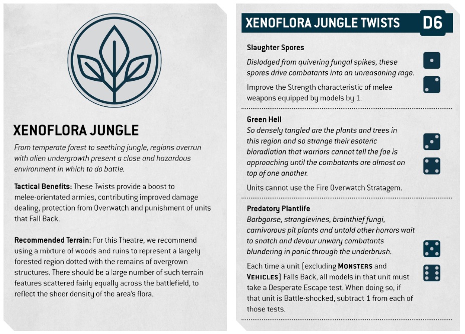 These sectors also have their own options for setting the table. There might be a Xenoflora Jungle you’re battling in and that has implications. You can read some of those above. What I also appreciate about this system is that there is recommended terrain to use. However, this isn’t set in stone — you can use what you have available.