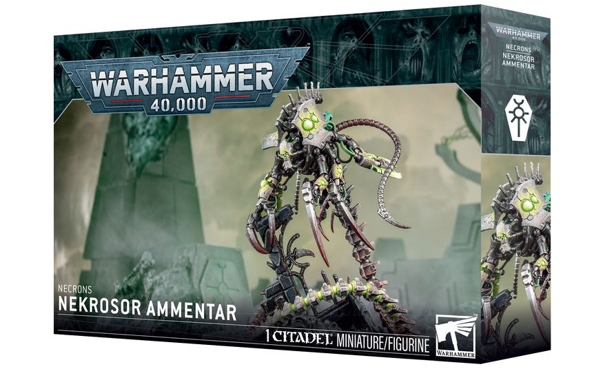 This multipart plastic kit builds Nekrosor Ammentar, the primary vector of the Destroyer Cults, for your Necron armies in games of Warhammer 40,000. Truly a bizarre and hulking brute, this heavily modified construct is designed to annihilate the living, which it does with blades and enmitic weaponry. If you favour an aggressive force, it makes a fitting leader to charge forward with your fastest units, eager to tear enemies apart and spurring your army on with its sanity-bending presence. As a painting project, the scenic base elements and dynamic pose make it an excellent showcase for your skills, and it will look equally impressive on the tabletop and your display shelves.