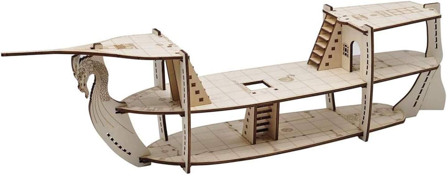 If you’re adventuring on the ocean, you’re going to need a boat. Sure, the ocean is dark, and you can’t see the monsters that live down there. But there’s treasure out there somewhere,e and we’re going to find it. This boat is gridded out just like all of our favorite battle maps, so you’ll always know where all of your friends are around the ship… and how far away the enemy is standing.