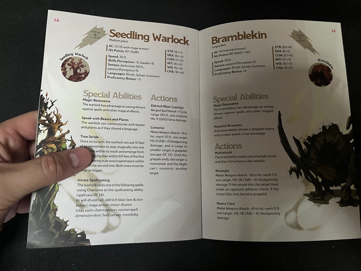 Now, I don’t want to show off all the goodies in this adventure. So I’m going to try to avoid spoilers but there will be some anyhow. The layout of this one is similar to previous Epic Encounters — which is a good thing. What I love about this series is how modular they all are. These scale based on your level of your party and the adventure itself is strong enough to be used in just about any campaign. I mean, there’s bound to be a creepy forest in your fantasy world somewhere, right?!