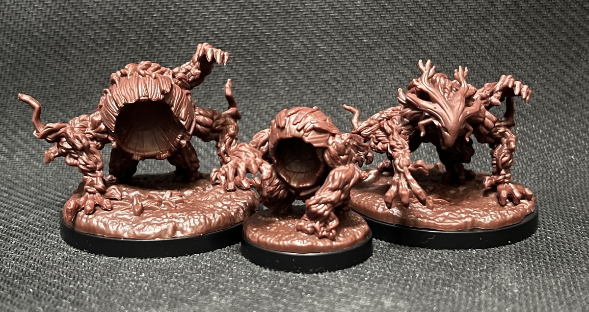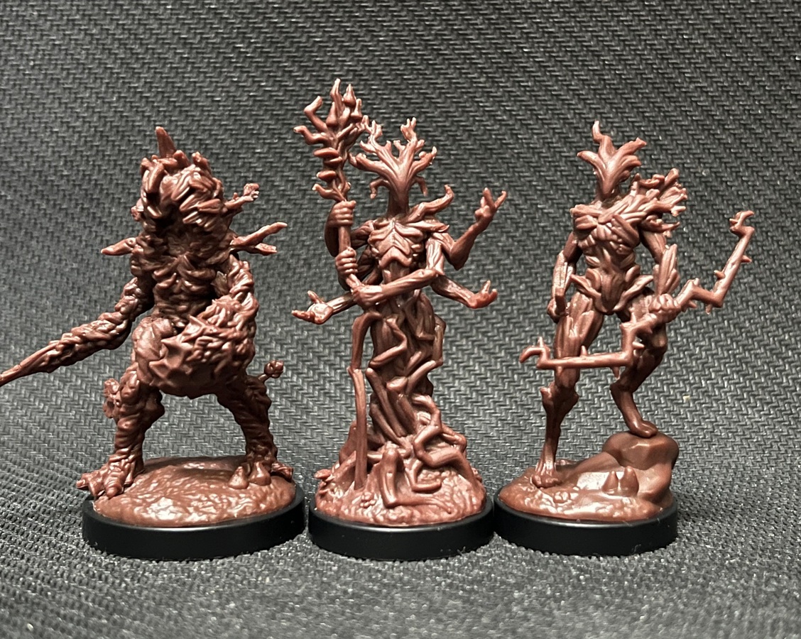 One other thing about this batch of miniatures is you get these squat tree spirits on larger bases as well. I really like the diversity of the miniatures included. It makes sense that some of these Treekin/Forest Spirits are more stumpy than others. No wonder they are mad — someone cut them up!