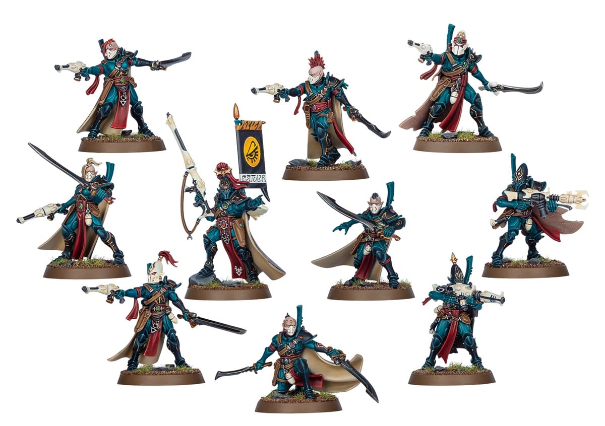 What a lot of folks are excited about is the mixing of the Aeldari Craftworlds and Drukhari aesthetics here. You can see the influence of both sides of the Aeldari in the Corsairs. This is something we haven’t really seen from GW since the Ynnari. And I think that’s something that’s really been missing.