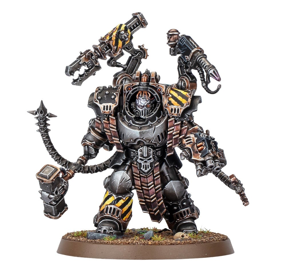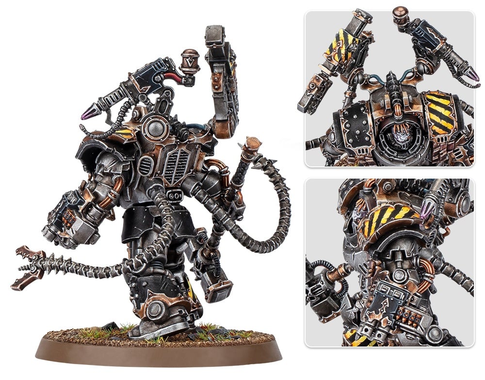 I like that this miniature is a nod back to the Cataphractii Terminators while still getting a nice jolt of chaos goodies. Warsmith Kravek really reminds me of Doc Ock though with those extra augmented servo-limbs. Well those and the mechatendrils… Anyhow, these were clearly teased earlier: