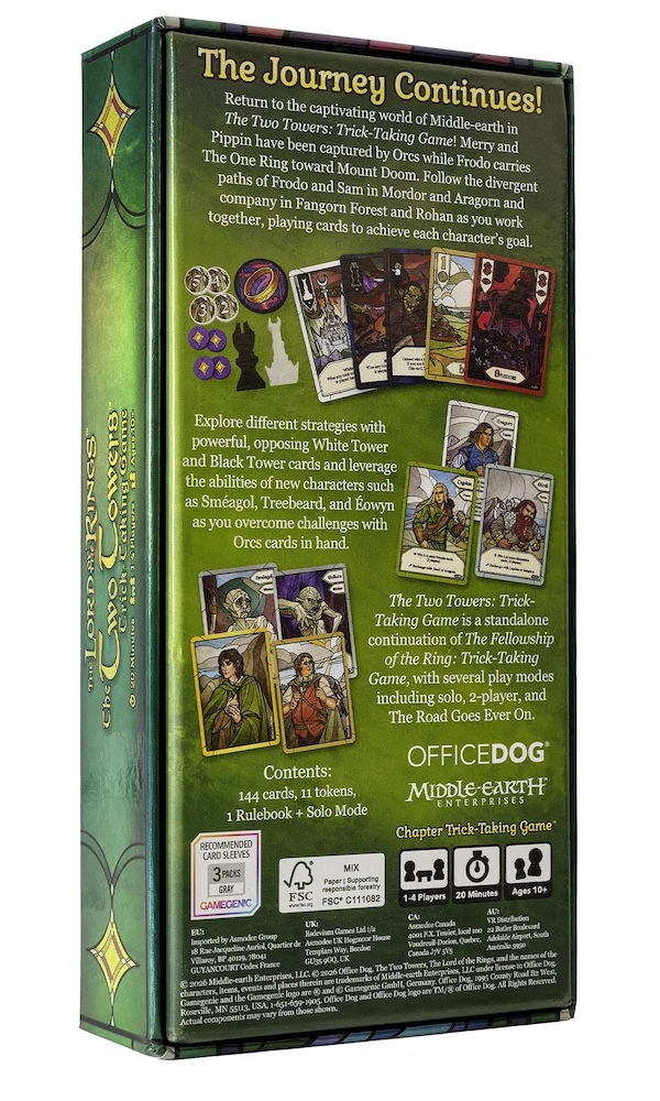 The Two Towers serve as two trump cards. A tie-breaker occurs when the both towers are played in the same trick – they cancel eachother out. The expansion also adds three orc cards as dead cards in a player’s hand that pose a threat if they are not handled with care.