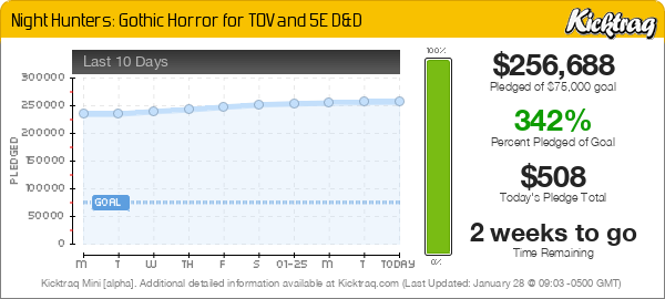 - WHY SPOTLIGHT THIS CAMPAIGN? Kobold Press offers their take on 5e Gothic horror with Night Hunters and Night Terrors. These books give you new player options – new subclasses, backgrounds, heritages, and monstrous lineages – as well as enhanced mechanics to ramp up the terror at the table with a robust dread system and a new system where the GM can tempt players to make dark decisions in exchange for in-game perks. Night Terrors gives 12 adventures with unique villains to push the nightmares your characters encounter. To support these books, Kobold provides a set of 56 Tarot-sized cards featuring the bad guys of this setting as Major Arcana. In addition, the cards can be used for Kobold’s in-world card game. Kobold Press does beautiful 5e books, and these look like they will sit well alongside official Wizards of the Coast options like Ravenloft. Their projected delivery is summer of 2026, well ahead of the Halloween, so you can make use of this for any seasonal, themed adventures. If you need 5e-specific dark fun, check out this Kickstarter page to get a free preview and/or back the campaign.