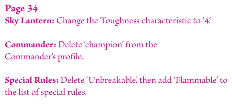 The Armies of Grand Cathay got a good look from the Rule Team this time around. The big callouts here are the change to the Ogre Loader, lots of tweaks to the points and effects of magic items, and Sky Lanterns getting their survivability reduced.