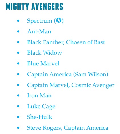 The errata is out. But I’m not sure if this was missed or just delayed. In either case we have an official Mighty Avengers Affiliation roster.