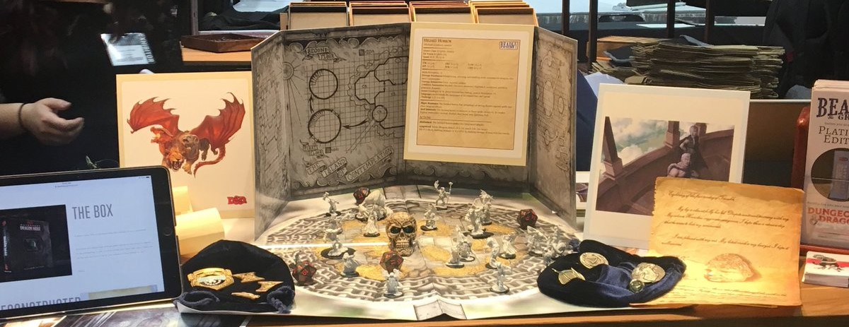 First things first, if you’re wondering what’s all this then: Beadle & Grimm’s make deluxe campaign experiences. They take books – primarily campaigns, but also they have tackled the occasional campaign setting – and turn them into easy-to-run, more immserive versions by printing up gorgeous battle maps (with grids and everything), making in-game handouts for you, giving you a suite of minis and art cards for the monsters (at least the real important ones), and even giving you cool trinkets that tie-in to the adventure.