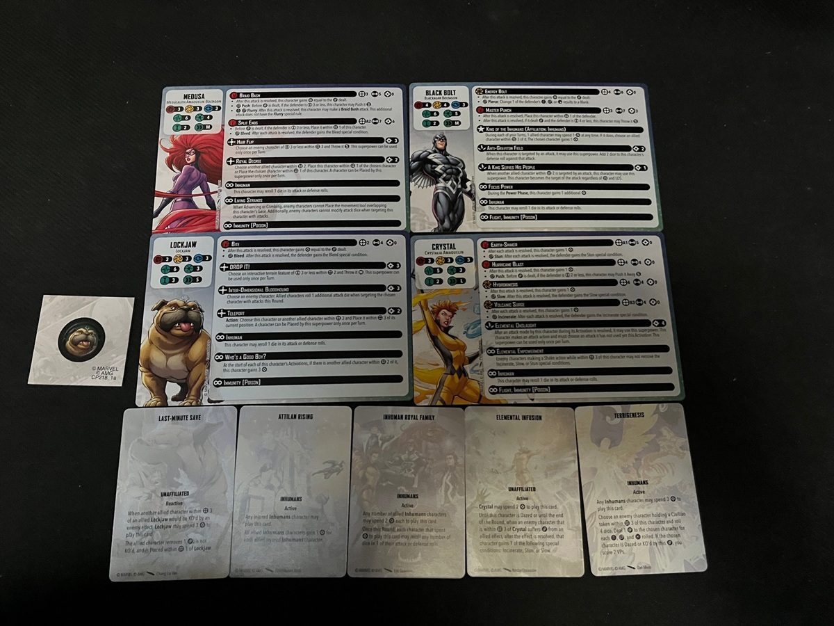 These cards are also new to the Inhumans in this box. They are all updated with art as well as rules. These are the most current versions from AMG so they make for a great place to jump in for new players or veterans looking to start the Inhumans.