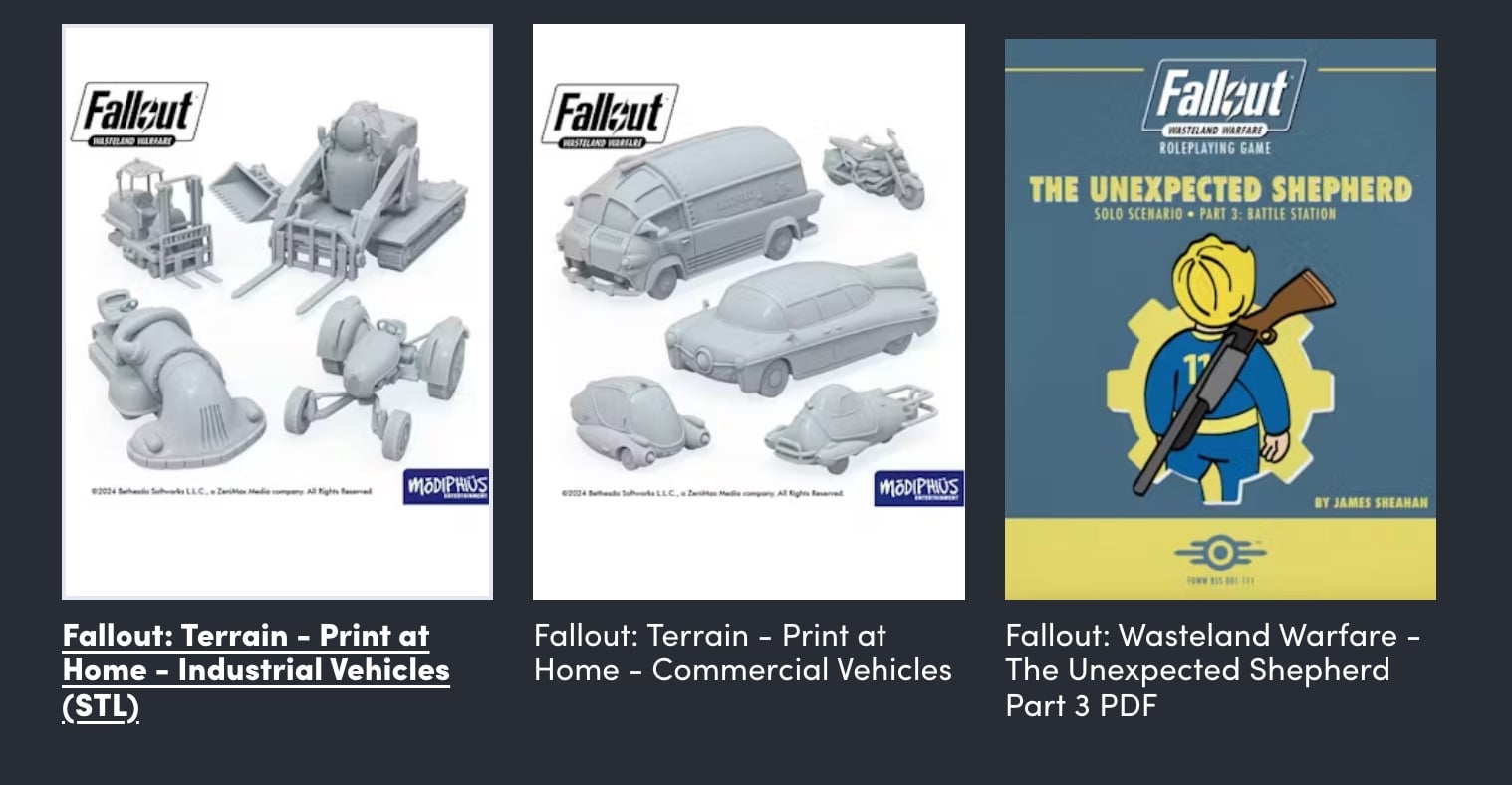 Even if you don’t have a 3D printer, this bundle still has a lot to offer. You get a pretty robust selection of Fallout RPG titles, too: