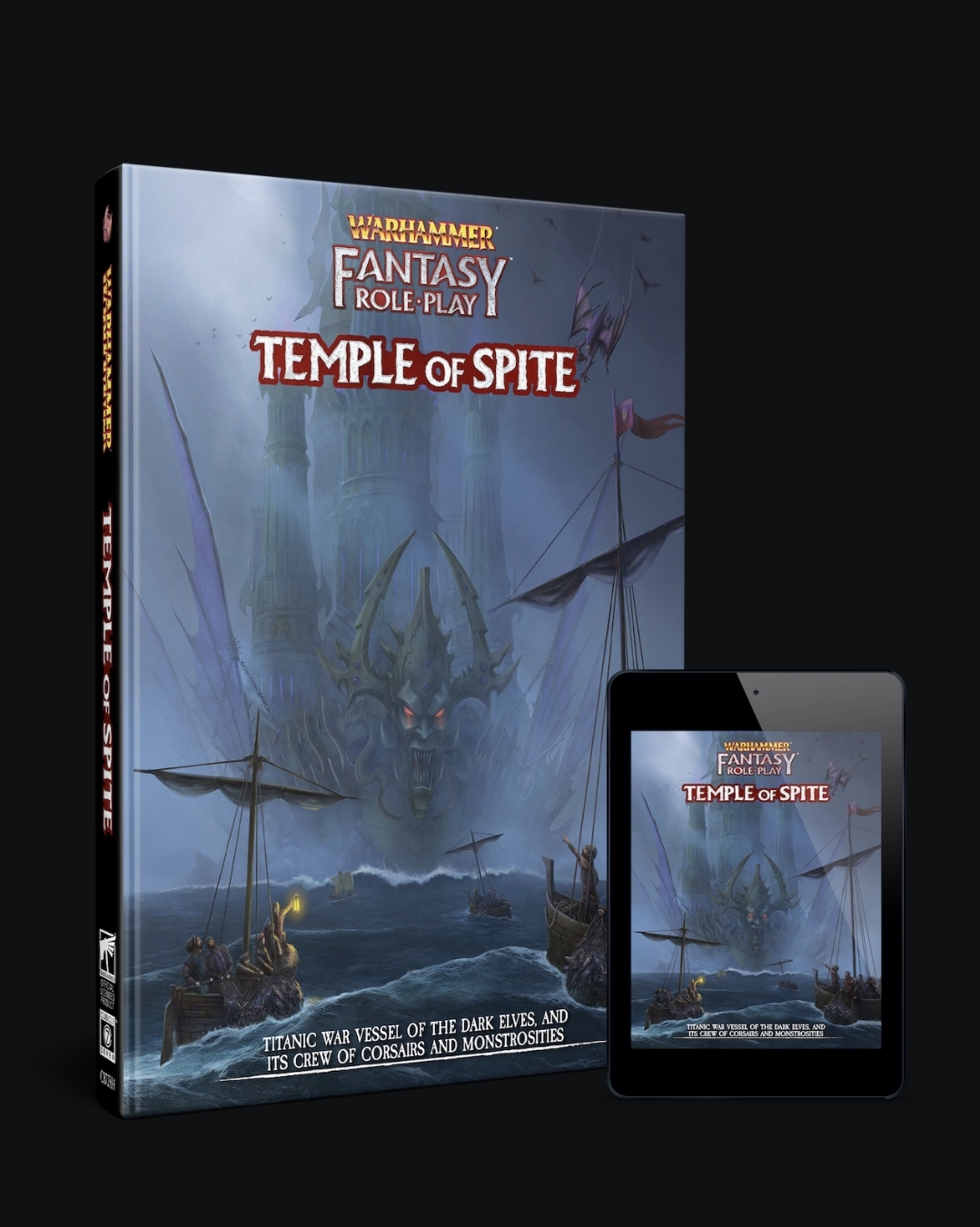“There is a dread that every sailor of the Old World harbours deep in their heart: the sight of black sails emerging from heavy fog on the horizon. Those ebon sails herald the coming of the dark elves, and with them all the cruelty, treachery, and wicked intelligence they bring to bear upon those unfortunate enough to encounter them. If you’re a fan of Druchii lore or a Game Master looking for a powerful new threat in your campaign, Warhammer Fantasy Roleplay: Temple of Spite is a book you should snatch up, as it provides the definitive guide to the cruel Druchii and the floating citadels that allow them to strike across the world’s oceans, the massive black arks.
