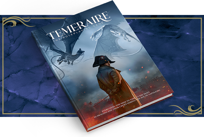 “Temeraire: The Roleplaying Game is a way for you to experience the excitement of draconic battles and Regency era drama all for yourself! The tabletop roleplaying game supports approximately 3-5 players, with one taking on the role of a gamemaster responsible for portraying the world and adjudicating the rules, and the rest taking on the role of their own individual character. The game is designed for ongoing stories, as the characters pursue their dreams and face the consequences of their choices.