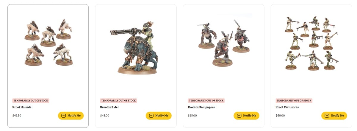Maybe that is a sign to wait on starting that Kroot army of your dreams? Unless your local store has a bunch of backstock, maybe plan around that. There ARE Kroot character options in stock at least. So you can snag the Trail Shaper, Flesh Shaper, and/or War Shapers. You can’t really build a 2,000 list with the Combat Patrol and 3 characters however. Did you want to add in some Vespids? I guess that’s an option, too.