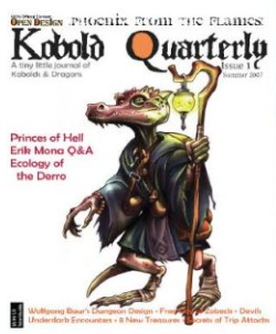 So I launch a tiny ‘zine called Kobold Quarterly to fill the gap. That summer we shipped issue #1, which included an interview with Paizo publisher Erik Mona (king of periodicals for years at both Dragon and then at Paizo with adventure paths). As is tradition in magazine launches, I wrote the editorial and four articles myself, including the first view of the city of Zobeck. This was not sustainable.