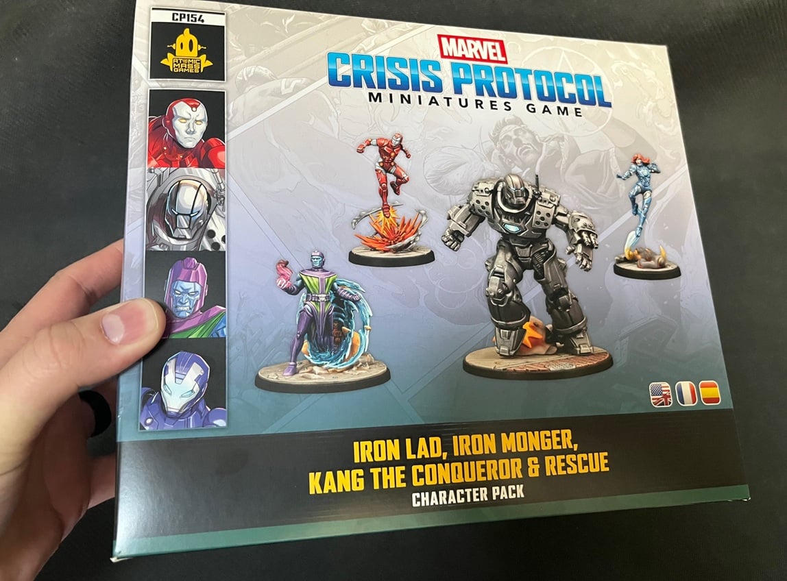 Is it time for the Armor Wars? This new character pack is sure making me think so! Atomic Mass Games sent me a review copy of the new Iron Lad, Iron Monger, Kang The Conqueror & Rescue pack (boy that’s a mouthful). In showed up in the mail late yesterday and I was able to take photos and build all the miniatures. I’m pretty stoked to get to bring this one to you so let’s dive in!