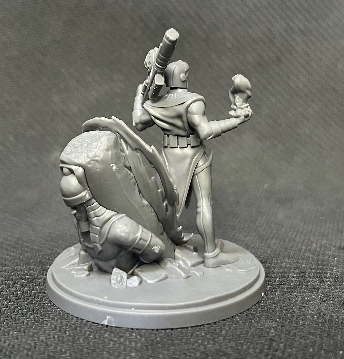 Those two bits on the left side broke off in transit. Again, this is why AMG puts their sprues in baggies. Everything was in the same bag so those didn’t get lost. Iron Monger ended up with two sprues worth of bits and the large (60mm) base. Kang has his own custom base (it’s 50mm) and Iron Lad and Rescue both come with the standard 35mm bases.