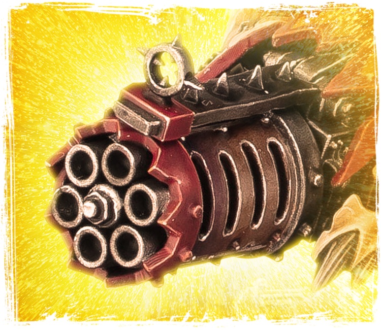 The caption was “Kustom Ork Kannon?” and that does seem to fit! The question I have is what is this attached to. Is this a turret of some sort or is an Ork carrying this one around. Also, what’s up with that bone/jaw line under it? Are those teeth? Or maybe claws? I also like the jagged plating as well. And how about those Iron sights?! I guess those don’t run out of power in the middle of a fight.