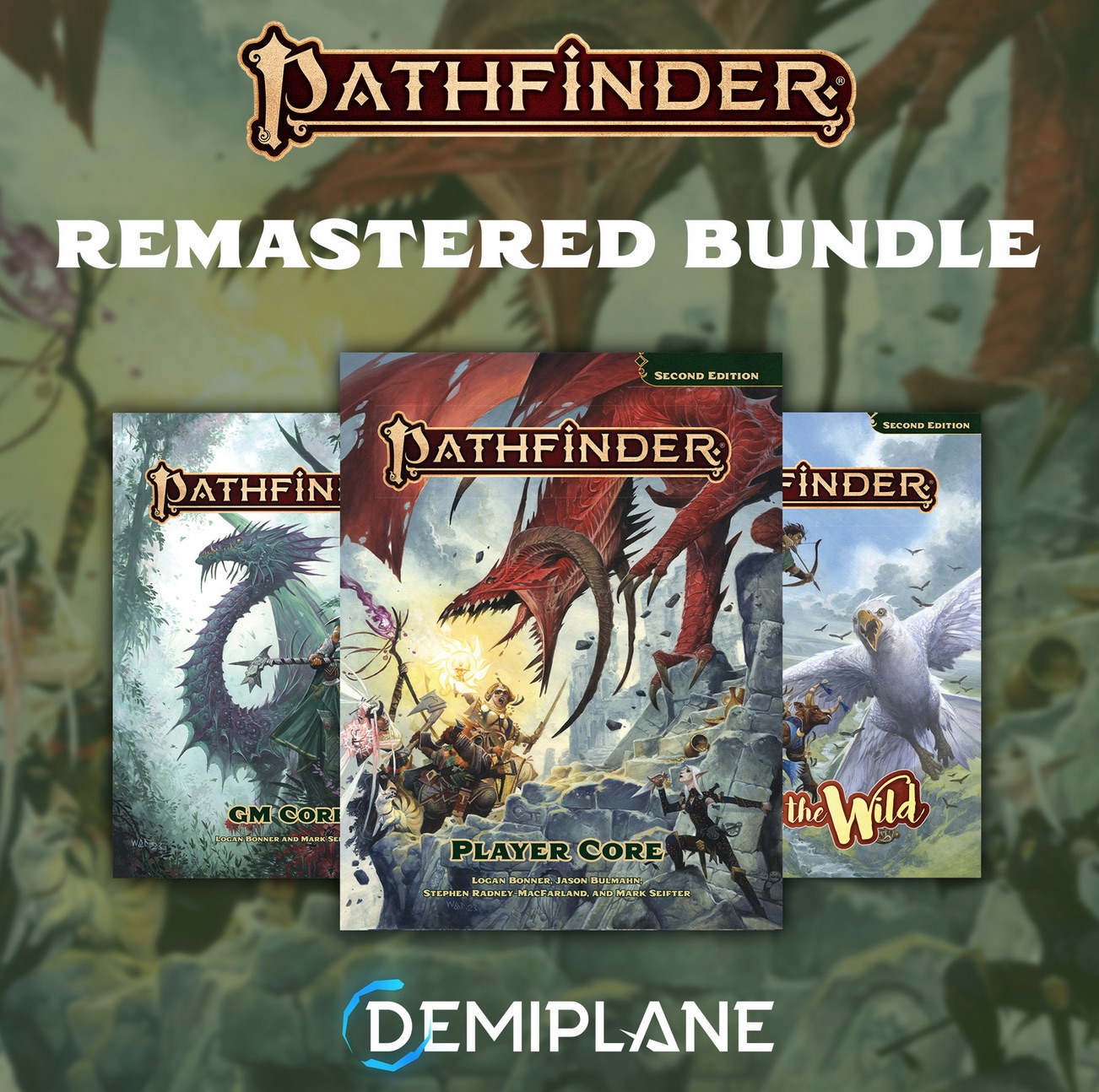 “Equip yourself with every official Pathfinder Second Edition rulebook from the start of the remaster! Get an ongoing 15% OFF the regular price for ALL future Pathfinder Second Edition rulebooks on Pathfinder NEXUS with the Remastered Rulebooks Bundle from Demiplane.”