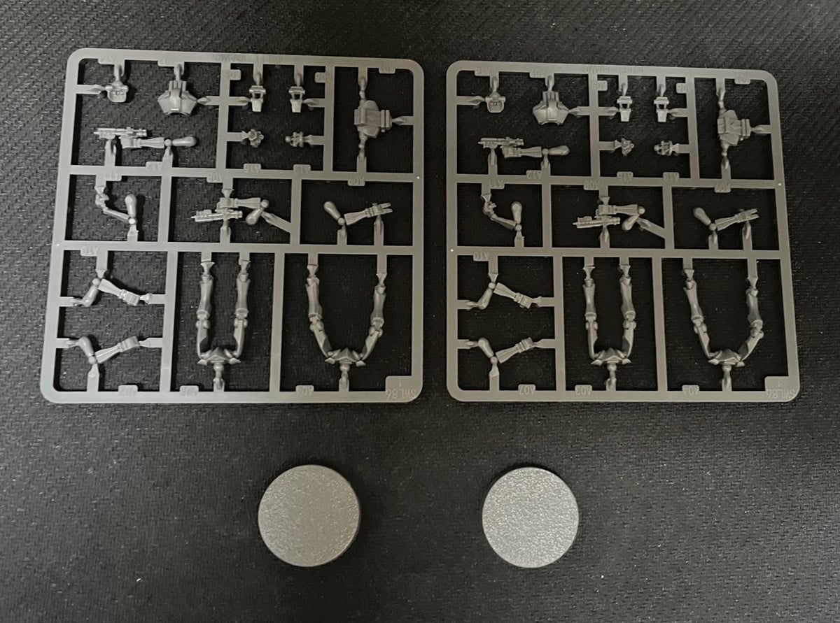 In the box, you get two copies of the same sprue. Basically, if you had a way to get couple more torsos, you could really build four of these droids with all the bits included. Oh and the feet. You’d want another two sets of those as well.