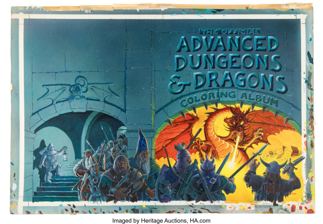 Heritage Auctions has placed the original painting for the wraparound cover for The Official Advanced Dungeons & Dragons Coloring Album onto the block at the April 4, 2026 Comic Cover Art Showcase Auction.