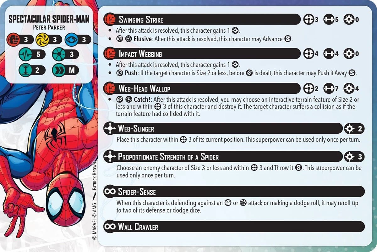While it’s not a 1:1 copy of the same abilities, there’s a LOT of carry over here. The art is the same for starters. The format of the abilities is very close. We are still using a lot of the same visual language such as Range, Strength, and Energy cost. We even see the defensive stats on the bottom of the Alliances card, too. It also seems like the level up cards add other attacks from different versions of Spider-Man (in this case). And those seem to have very similar effects from those MCP attacks, too.