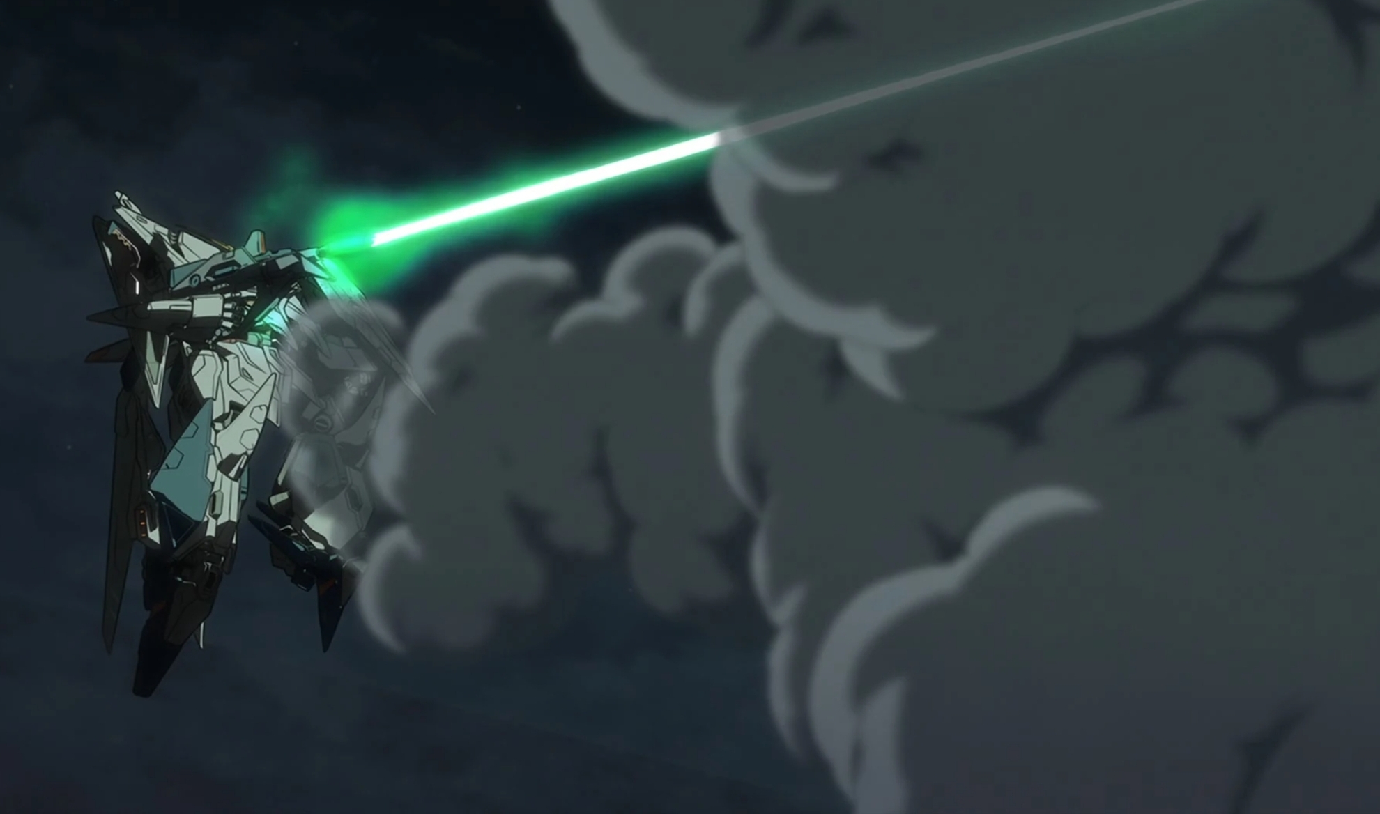 Though in many ways, the true weapon of the Xi Gundam was its mobility. It could adopt a flight form; the Minovsky Flight Units strapped to its shoulder armor worked in concert with a Beam Barrier system, enabling it to reach sypersonic speeds. Thanks to the conical vortex of the beam barrier, the RX-105 could hit speeds upwards of Mach 2, enabling it to be an omnipresent threat on most battlefields.