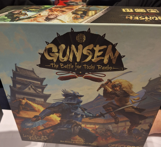 Board Games. Many publishers in this category were in a state of flux at GAMA this year (moving from big box to small box; also, still releasing games pending from 2025). There weren’t too many games that were apparent potential hits. The best big box board game I saw was Gunsen: The Battle For Toshi Ranbo (see “Office Dog’s ‘L5R’“), but I might be a little biased based on my history with the L5R IP and my deep love for Clan War. The Dungeon Crawler Carl Unstoppable game from Renegade Game Studios also looks like a surefire winner as in the deck-builder category. As for smaller games, Flip 7: With A Vengeance will probably sell well.
