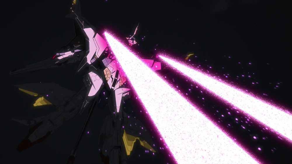 Two ideals. Two Gundams. A classic showdown. Especially since the Penelope was another of the 5th-generation Mobile Suits, in the same vein as the RX-105. And both made use of the Minovsky Fixed Flight System – though the Penelope was actually two Gundams in one, weirdly enough.