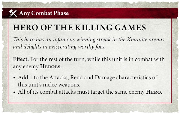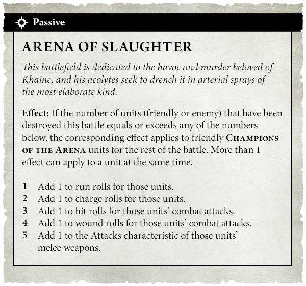 By restricting your options you gain other benefits however. In this case you get the Arena of Slaughter rules to help out. And just like the battle traits, these stack.
