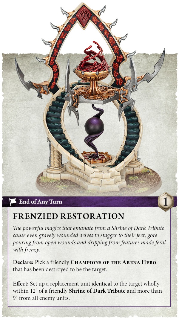 And, if by some miracle of the dice, your hero happens to fall you can always call them back through a Frenzied Restoration thanks to the Shrine of Dark Tribute!