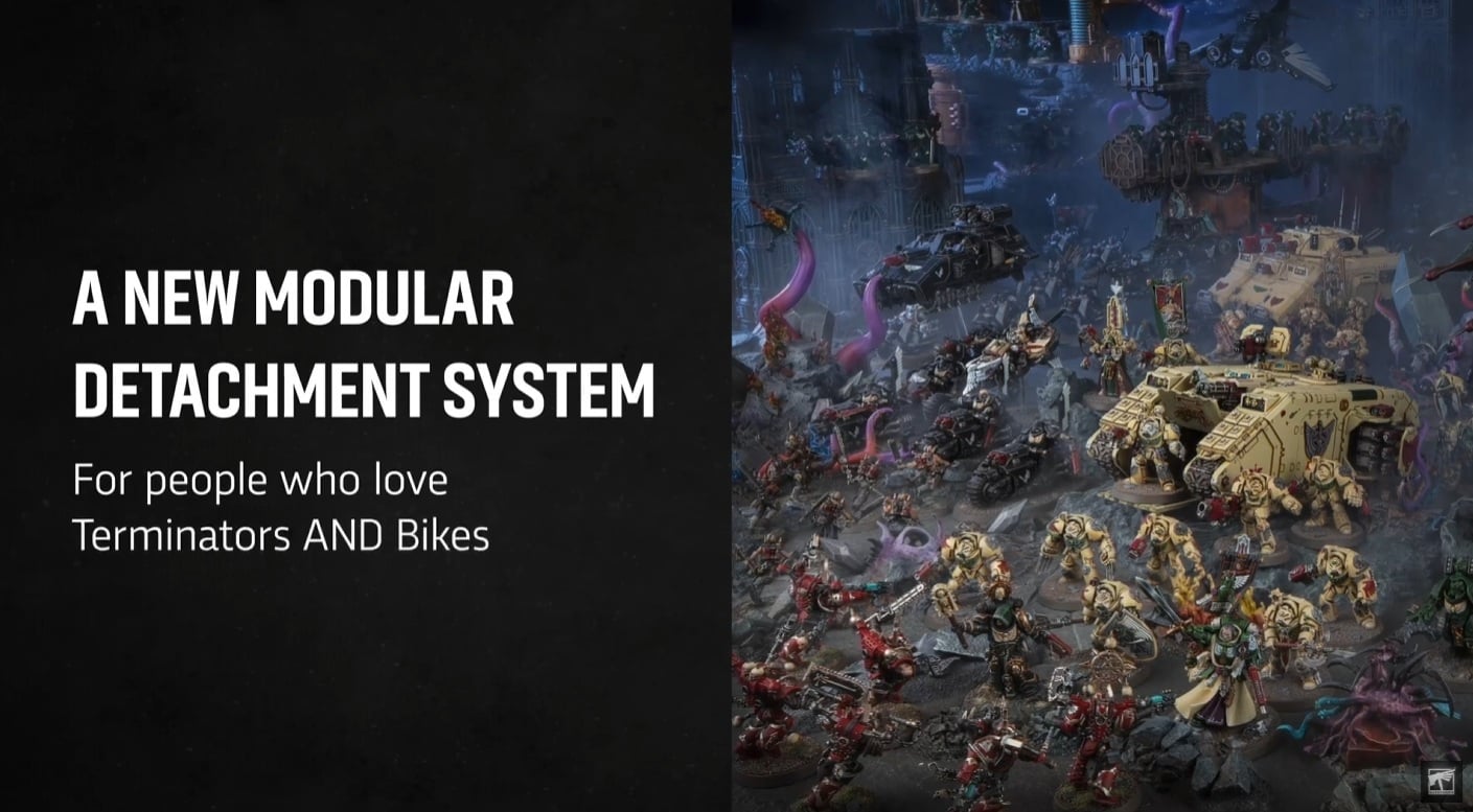 There’s 70 new detachments that are going to be added to the game. These will allow you to build the army you want and it should play how you think it should play. If you want to mix bikes and terminators, you can!