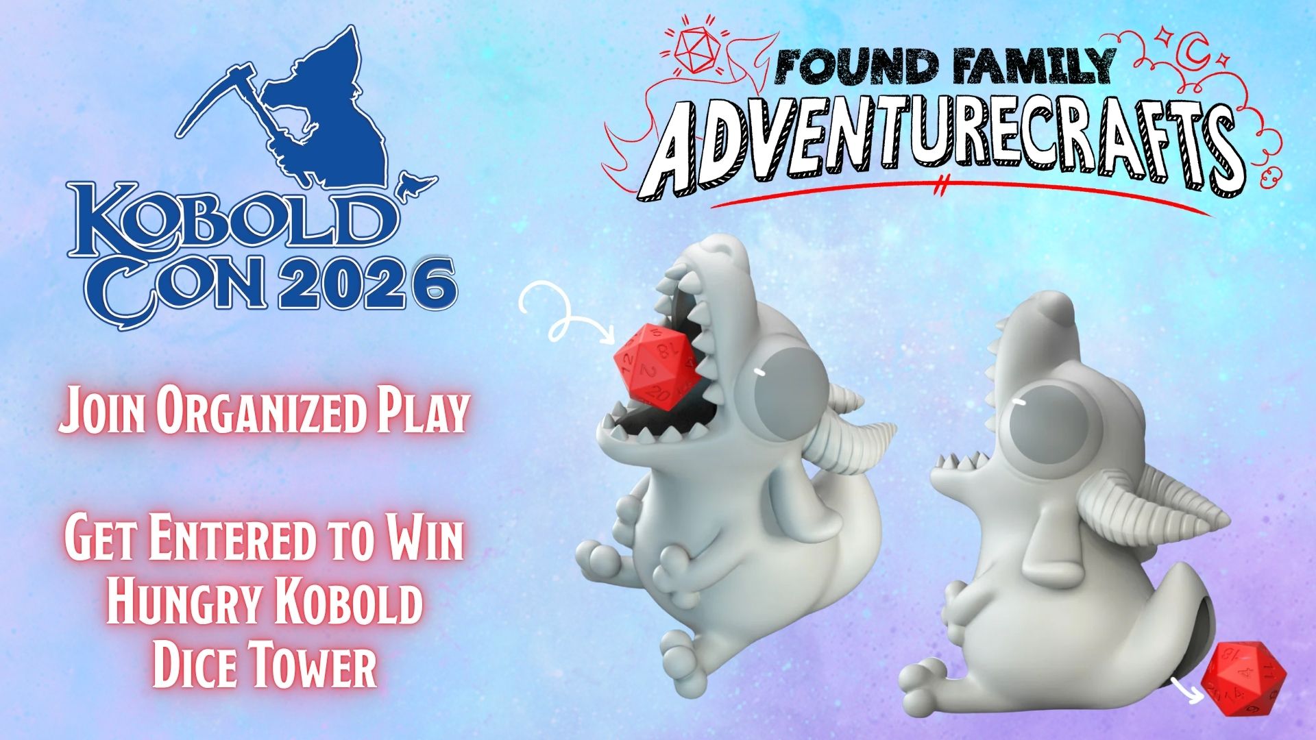 Player sign-ups are live now, and one lucky participant will win a Hungry Kobold Dice Tower from Found Family Adventure Crafts.