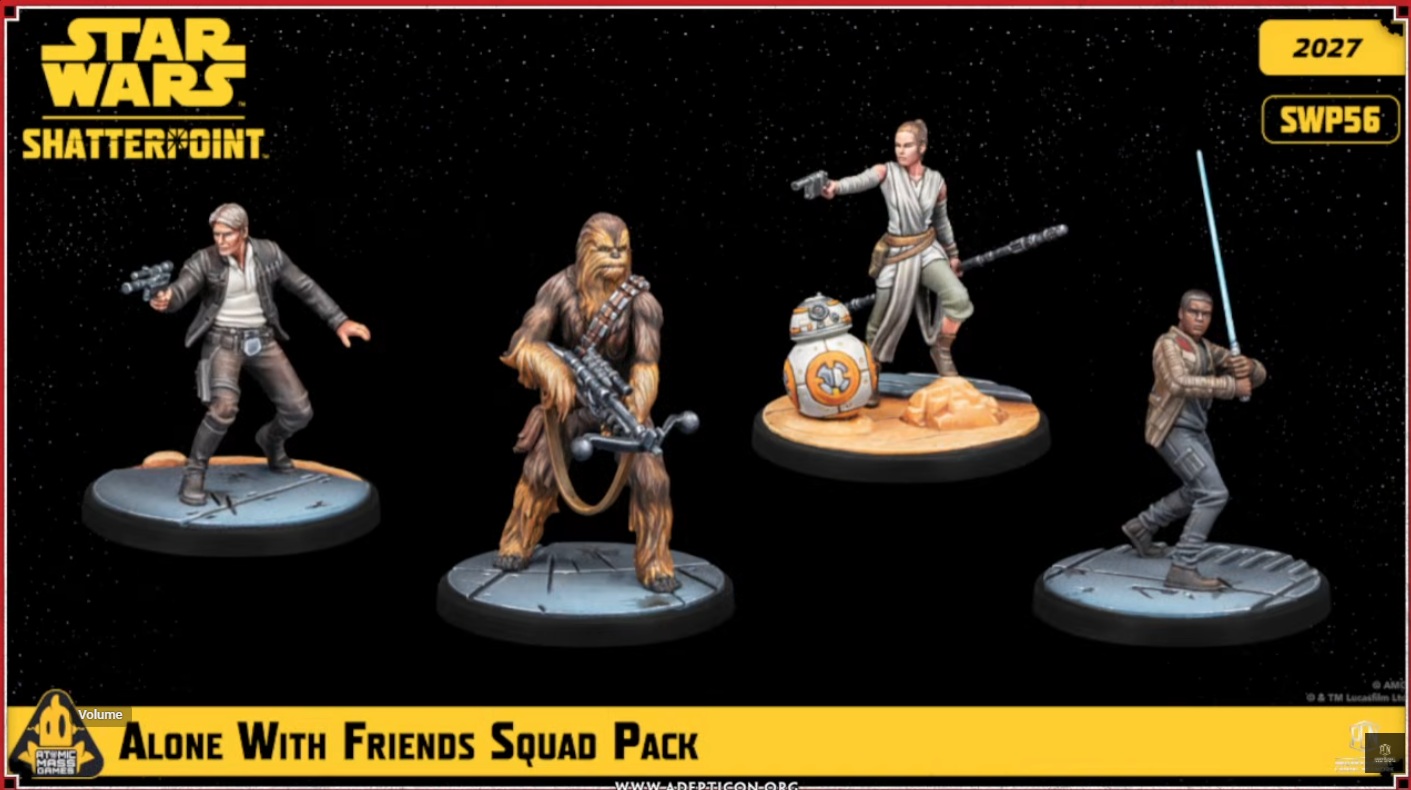 The Alone With Friends Squad Pack was teased already. But now we have the painted versions. Finn is actually the Primary Character here with Rey as the Secondary. Han and Chewie are a Supporting Unit which seems appropriate.