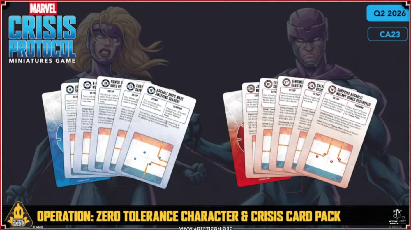 The crisis cards will also include a “narrative” sheet so you can play through the story of Operation: Zero Tolerance by way of the missions. It’s a fun and thematic way to use them. It’s should be similar to the War of Kings set.