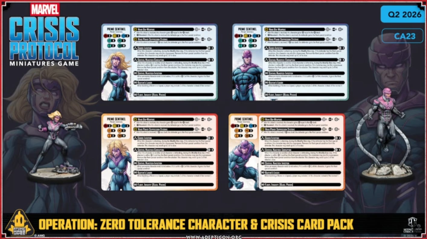 Up next, we got a look at the Operation: Zero Tolerance Character & Crisis Card Pack. This one features two Prime Sentinels and you can bring both in a single list.