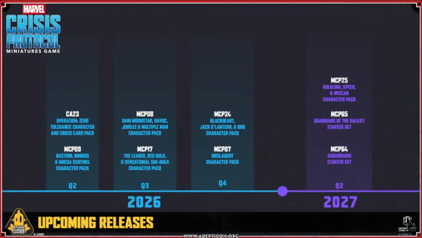Honestly, this one is kind of light. But it was mentioned that AMG is holding back some of the announcements so this is NOT an all inclusive look at the MCP releases. There’s a mysterious gap in Q1 of 2027 as well. While that might be for the Attack of the Sentinels release for MCPA, I feel like that’s not all AMG has planned. Oh well! Still, this preview had quite a few nice teasers and I’m sure 2026-27 is going to be a fantastic time to play Marvel: Crisis Protocol.