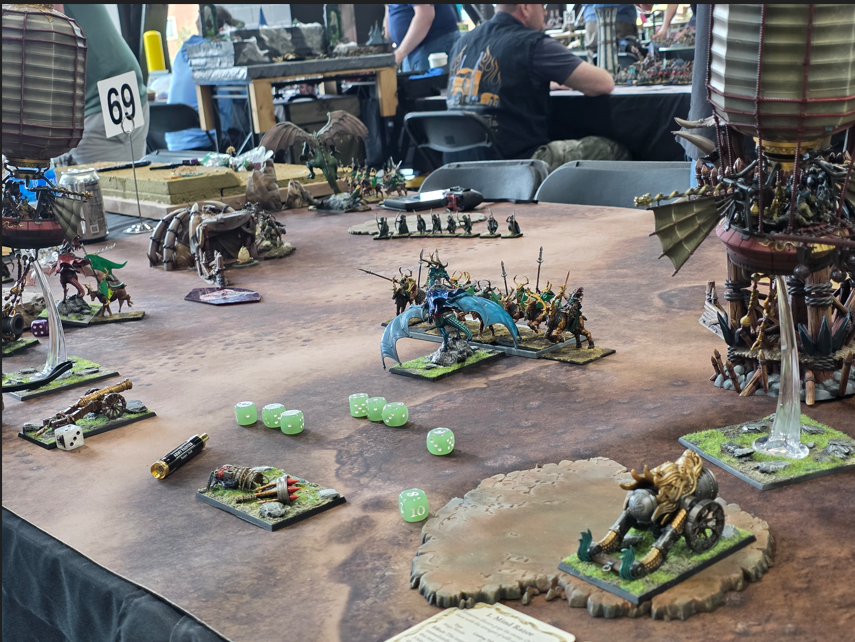 In round one he fought a very nice looking Chaos Daemon list. Round two found him paired into a strong VC with a strong player, possibly the worst match up. Round three was vs a double dragon High Elf list. Both rounds 4 and 5 were against Wood Elves with very similar lists, both being a single dragon Wild Hunt list. Those last two are also pretty good match ups for the list. However a lot of these players are very, very good and not anyone could have pulled out big wins vs all these lists. Very well done to Andrea for some great games.