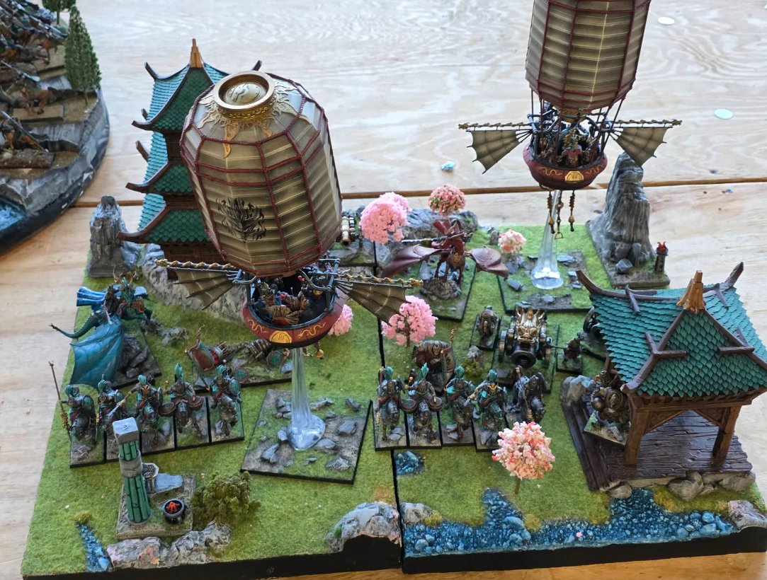 A huge amount of the power in the list comes from the two Shugengan Lords. Both rock Illusion, are tough to kill, and pack a punch in combat. They both have Doppleganger and are looking to use that to spike some damage. One of them is a little more tanky and the other a little more deadly. This lets Andrea pick the best lord for each job. A nice touch in the list is the Lantern bombs on the two balloons. Though they are set up for long ranged Crane Gunnery, the bombs let them be a little more flexible and move around, spike some damage if needed. It’s a flexible, evasive, high damage output list.