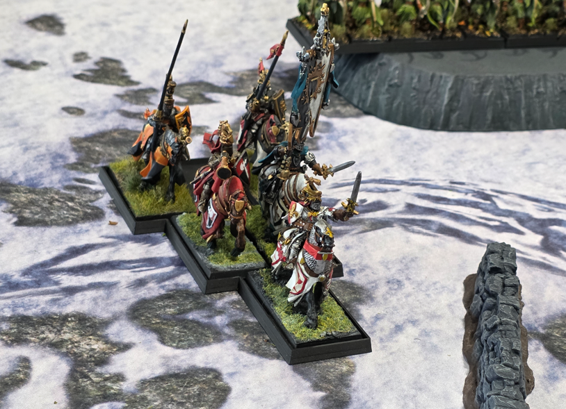 Sliver Helms and Knights of the Realm In Front, Baron and BSB in the rear and even some brigands in the flank for fun. Ouch! This game ended in a blow out with max 17 points for us. A really fun game vs some great guys.