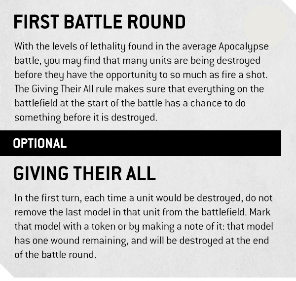 So far, so good. I really want a breakdown of the other 10 rules. Again, with these being optional, you don’t have to use them. It really does sound like you can pick-and-choose the additional rules that best fit with the experience you and your opponents are looking for with Apocalypse games. Because, let’s be real here, Apocalypse is not Matched Play. So have some fun with it and customize the game for what you and your friends want to do!