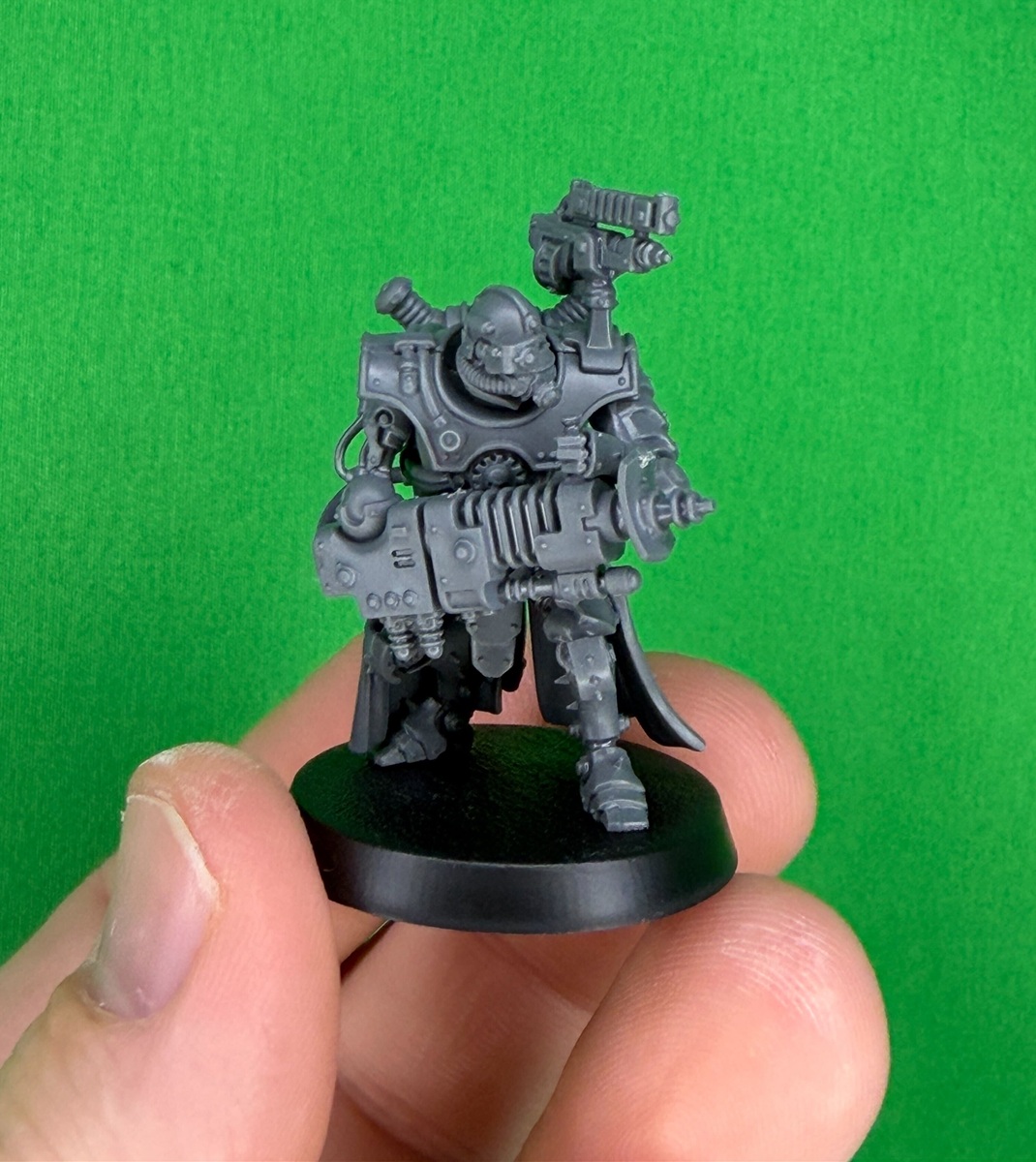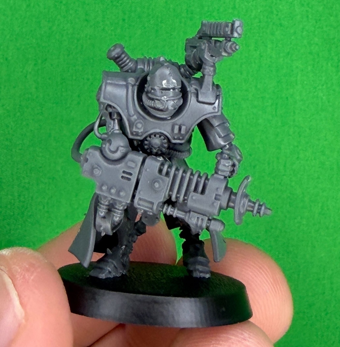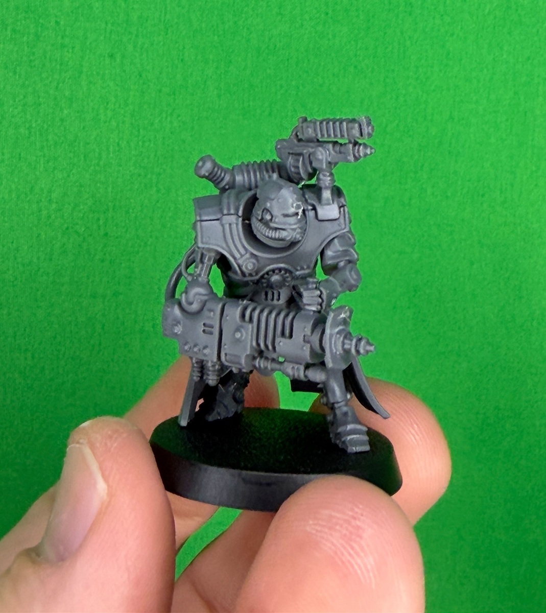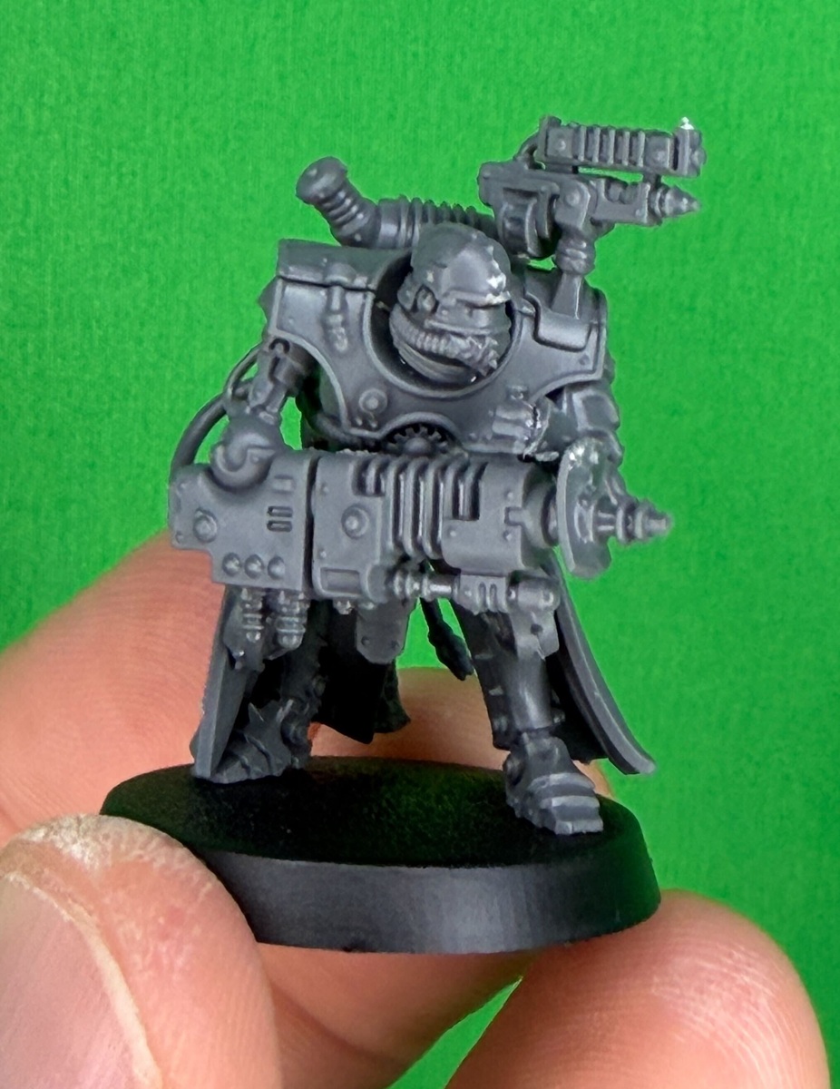Representing a new branch of the Machine Cult the Hastarii are here to bring the BOOM. They do come in two different flavors: Exterminators and Fusiliers. Both are elite units able to lay down firepower designed to take out their particular specialty. Goatboy built these miniatures and opted for the anti-infantry versions with Hastarii Exterminators. I do like the look of the Eradication Casters. They remind me of heavy bolters…but energy versions of those weapons. It’s a neat nod to the retro-futuristic style of the Ad Mech. It’s Buck Rodgers of the Grimdark Century.
